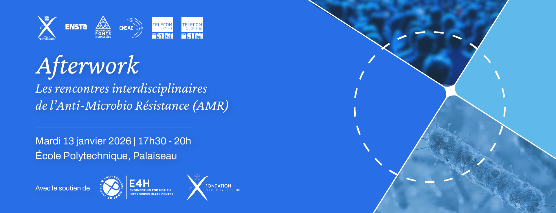 Nous vous donnons rendez-vous le 13 janvier 2026 de 17h30-20h, à l'École Polytechnique (Amphi du Pôle Mécanique), Palaiseau, pour venir découvrir les expertises développées au sein d'IP Paris dans le domaine de l'Anti-Microbio Résistance (AMR) et aborder les perspectives offertes par une approche interdisciplinaire et innovante de cette menace majeure.